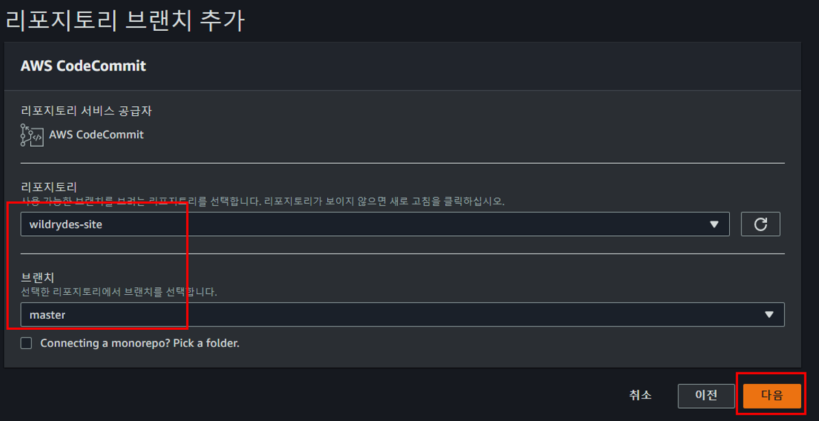 만약 CodeCommit 리포지토리 연동에 대한 상세 내용이 필요할 경우 아래의 링크 참조