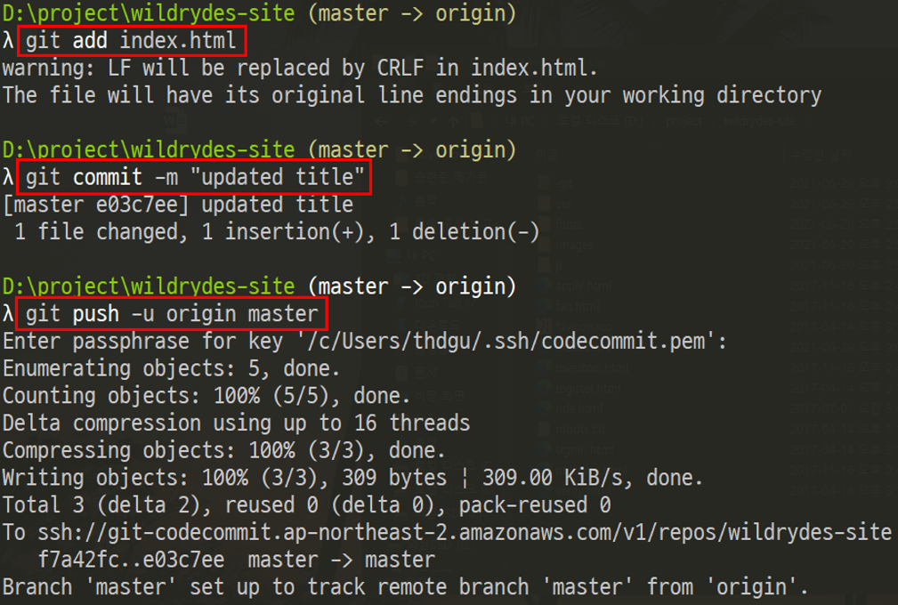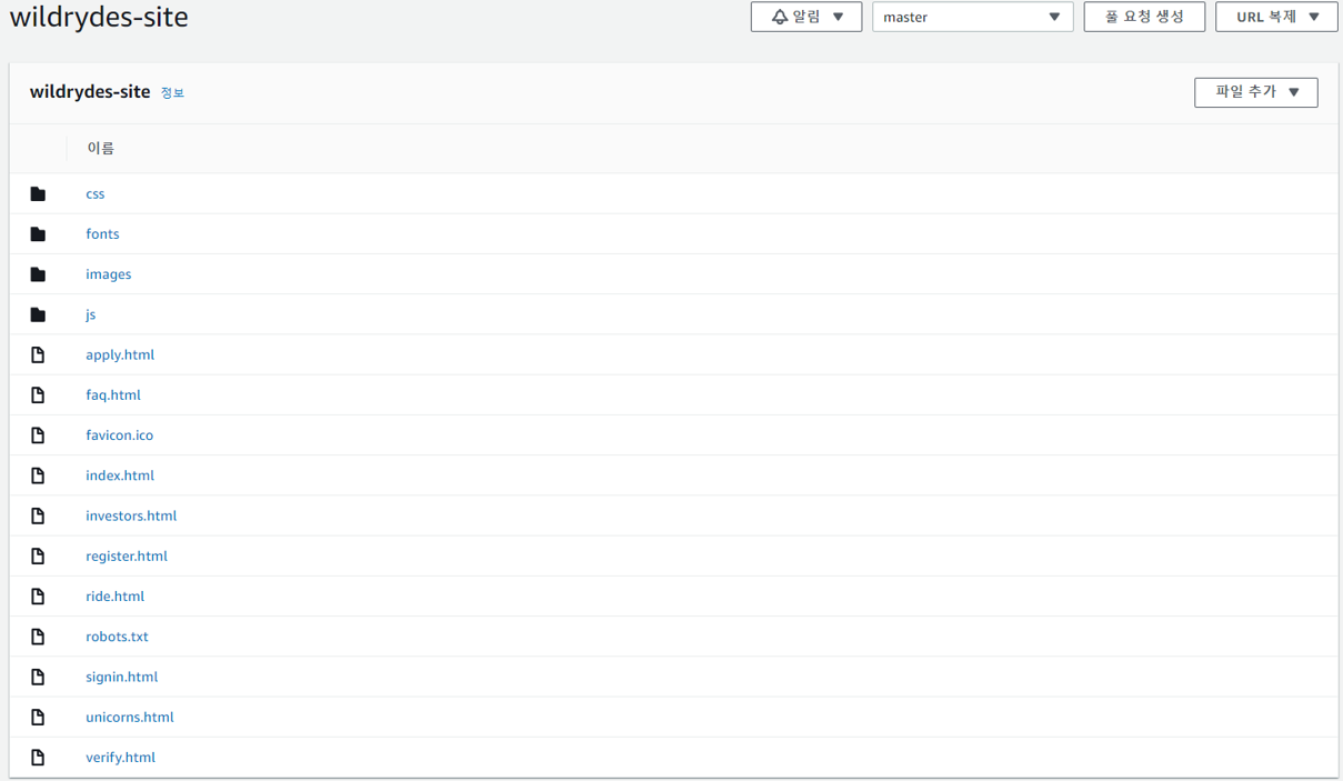 1.3 정적 웹 사이트(AWS 자습서 제공) 구성 내려받기 및 CodeCommit 리포지터리로 업로드