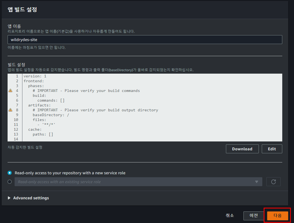 1.4 AWS Amplify를 사용하여 정적 웹 애플리케이션 호스팅 활성화