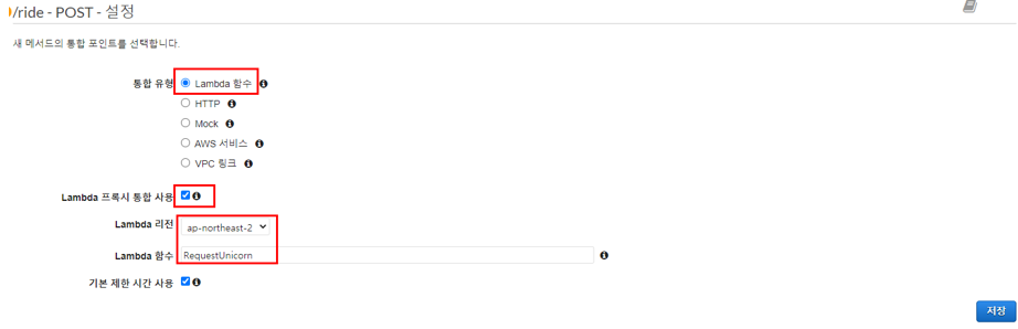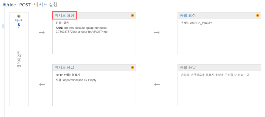 Lambda 프록시 통합 생성: 핸들러 함수의 'event'에 들어있는 세부 정보를 요청과 함께 Lambda로 프록시하도록 설정
