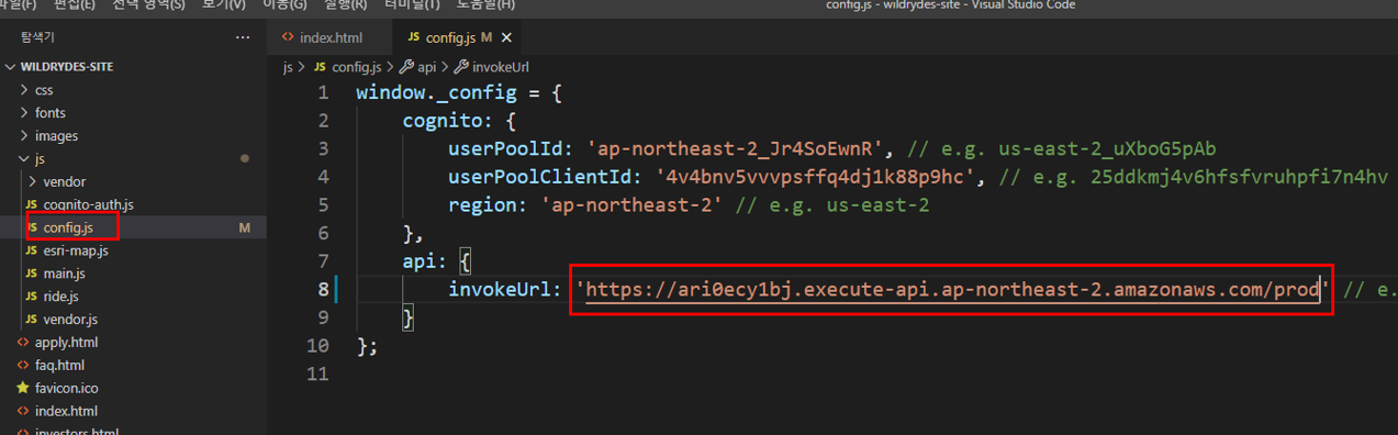 - API는 Amazon Cognito userPool을 사용하여 보호된다. 즉 로그인한 사용자만 특정 API를 호출하여 기능을 사용할 수 있다는 뜻이다.