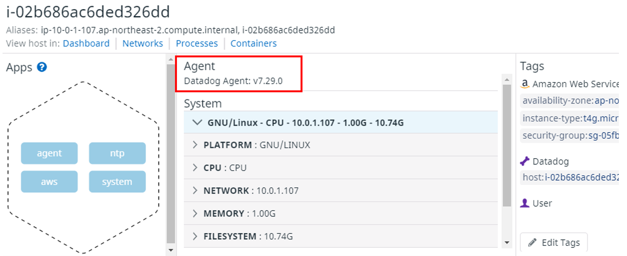 - 특정 호스트에 데이터독 에이전트를 설치하면 자동적으로 해당 서버의 시스템 정보를 수집한다.