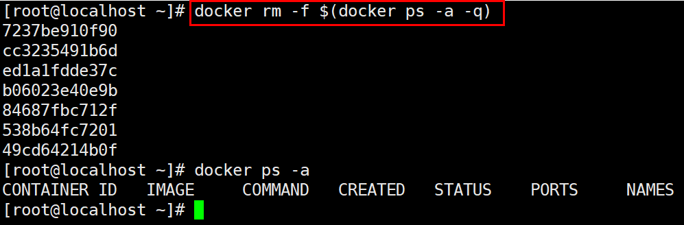 docker rm -f $(docker ps -a -q)를 사용하면 docker ps -a -q에 의해 모든 도커 컨테이너 ID가 변수로써 불러와지기 때문에 한 번에 모든 컨테이너를 삭제할 수 있다.