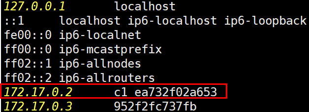 cat /etc/hosts를 확인해보면 c1이 지정되어 있는 것을 볼 수 있다.