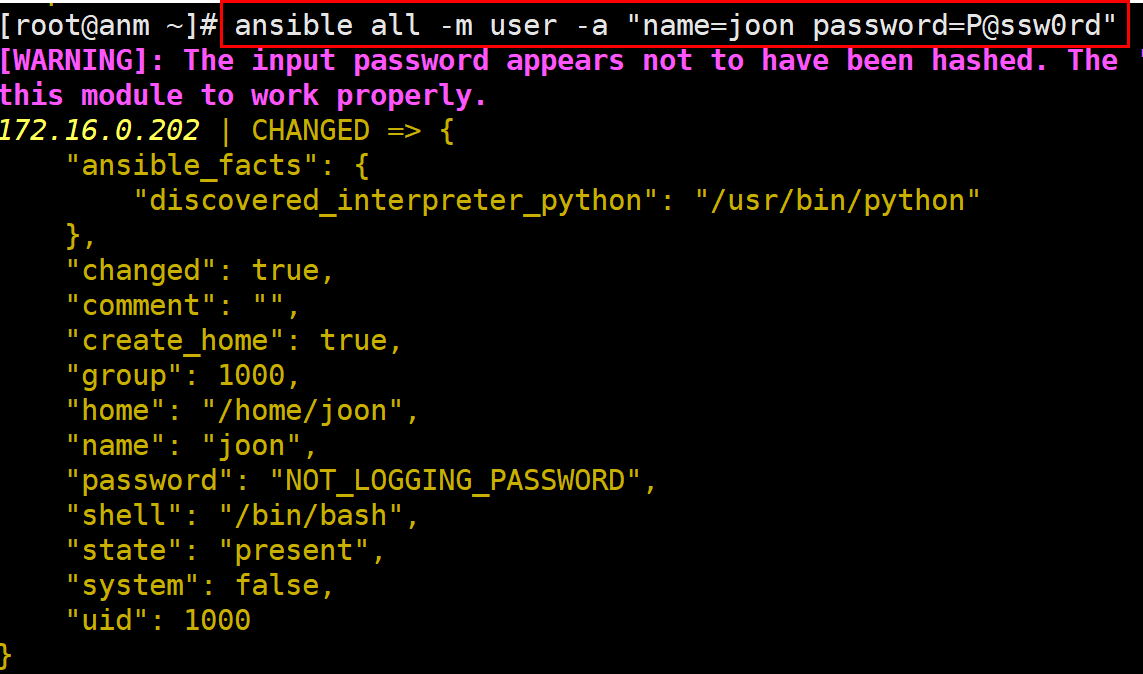 하지만 password를 암호화하지 않고 전달됐기 때문에 위의 명령어로 입력하면 사용자가 로그인이 불가능하다.