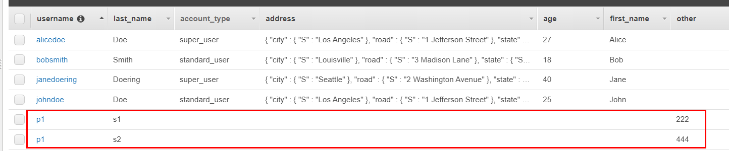 위 예제 코드는 [p1,s1,111], [p1,s1,222] 값을 테이블에 입력한 후 [p1,s2] 키의 값을 삭제하고 다시 [p1,s2,444] 값을 입력하도록 작성되어있다.