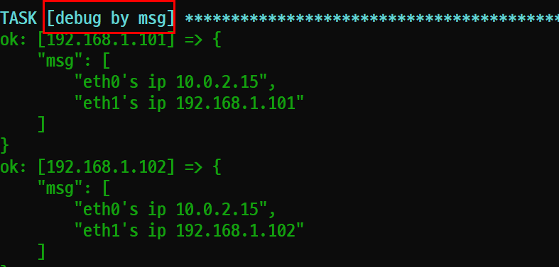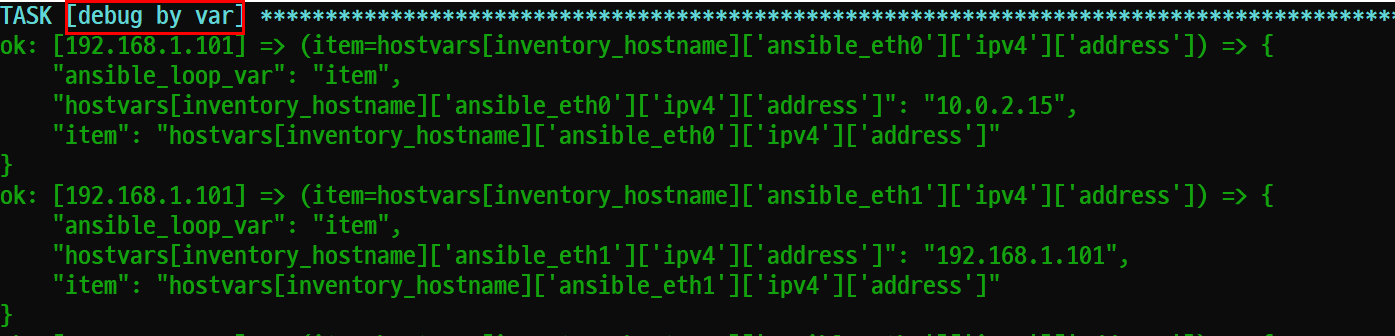 - "eth1's ip {{ ansible_eth1.ipv4.address }}"