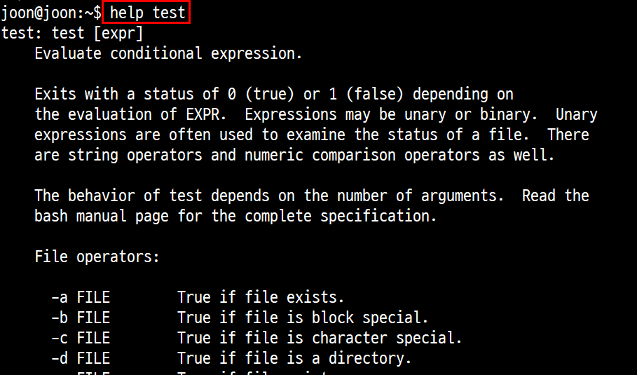 | -f file | 파일이 디렉토리면 false를 리턴 |