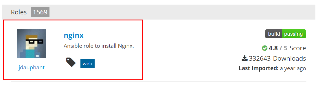 roles를 위와같이 설정하면 이전에 galaxy를 통해 설치된 nginx roles가 설치된다.