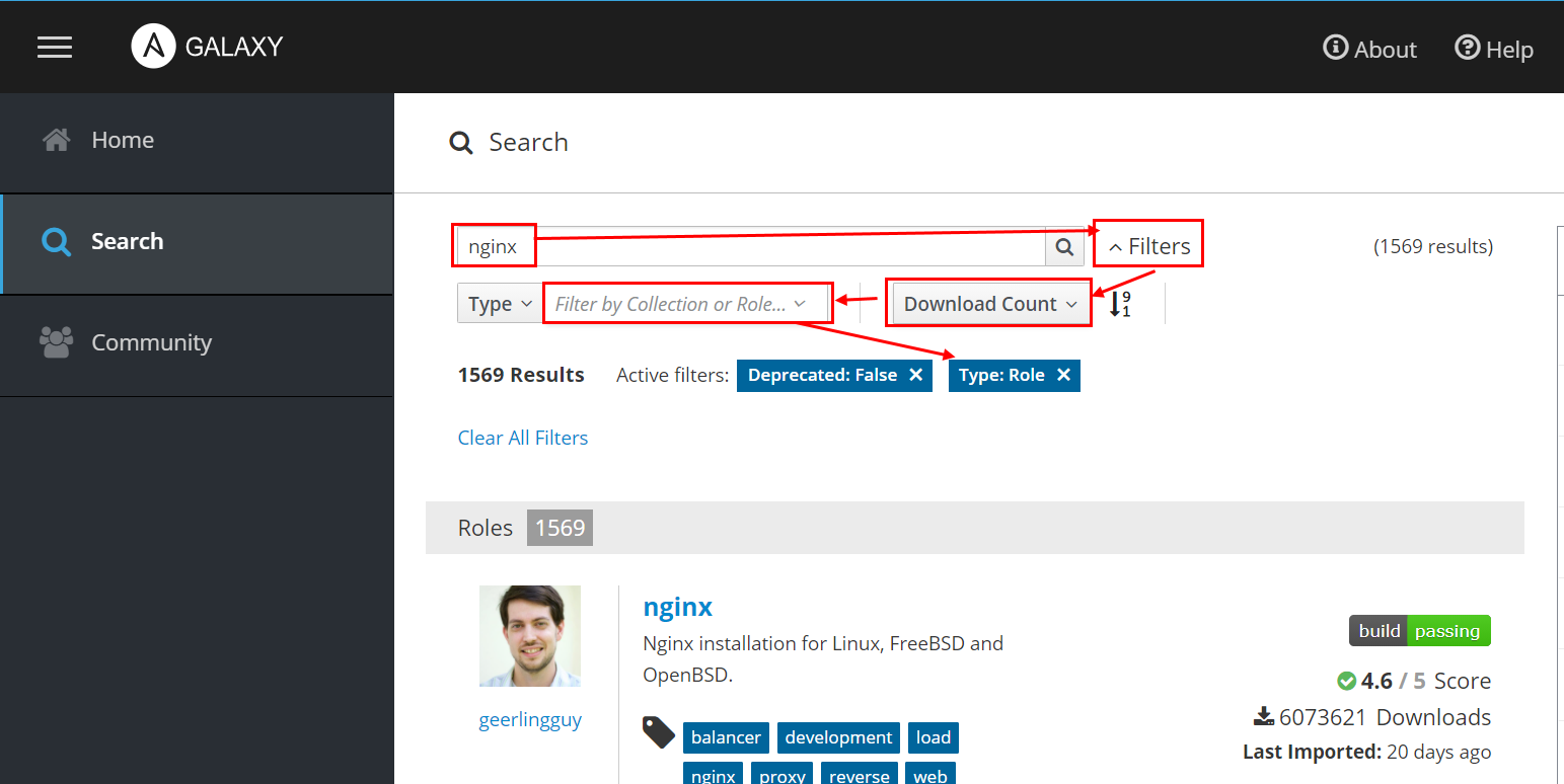 Ansible Galaxy는 다른 사람들이 만든 Roles를 검색하고 설치하는 기능을 제공해주는 도구로 이를 활용하면 특정 서비스를 빠르고 쉽게 구축이 가능하다.