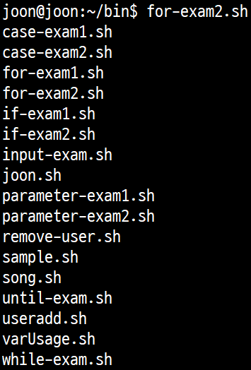 # chmod u+x for-exam2.sh