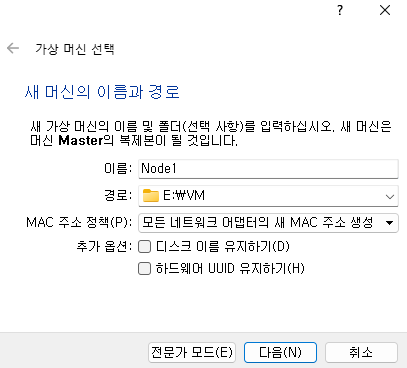 -> 같은 방식으로 node2 를 생성 (hostname: node2.example.com , ip: 10.100.0.102 로 설정)